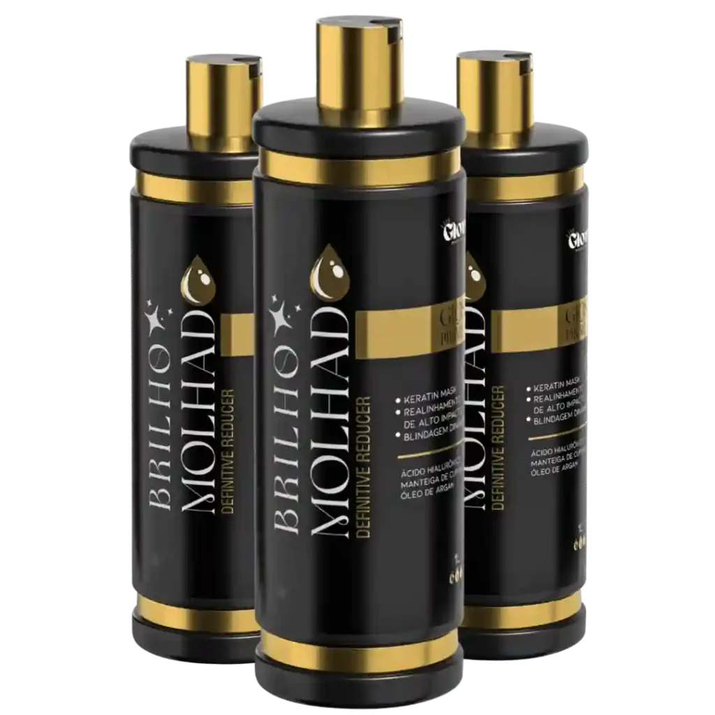 Uma unidade do Definitive Reducer Brilho Molhado contém 500ml e rende até 7 aplicações, proporcionando resultados duradouros e eficazes para o seu cabelo.